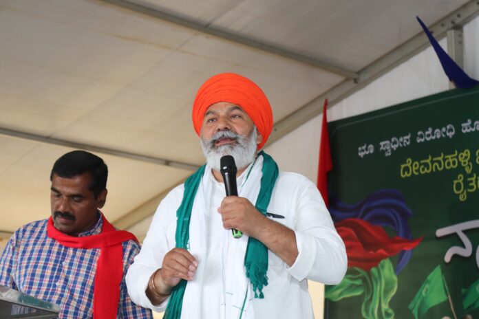 ಕೃಷಿ ಭೂಮಿ ವಶಪಡಿಸಿಕೊಂಡರೆ, ರೈತರು ಬಡವರಾಗುತ್ತಾರೆ: “ನಗರ ಪ್ರದೇಶಗಳಲ್ಲಿ, ವಿಮಾನ ನಿಲ್ದಾಣಗಳಿಗೆ, ಕೈಗಾರಿಕೆಗಳಿಗೆ ಎಂದು ಸರ್ಕಾರ ಫಲವತ್ತಾದ ಭೂಮಿಯನ್ನು ವಶಪಡಿಸಿಕೊಳ್ಳುತ್ತಿದೆ. ಭೂಮಿಯನ್ನು ಕಿತ್ತುಕೊಂಡು ರೈತರನ್ನು ಬಡವರನ್ನಾಗಿ ಮಾಡಿ, ಭೂಮಿ ಬದಲಿಗೆ ಅಕ್ಕಿ ಕೊಡುತ್ತೇವೆಂದು ಹೇಳುತ್ತಿದ್ದಾರೆ. ಇದು ನಮಗೆ ಬೇಕಾಗಿದೆಯೇ? ಇದರ ವಿರುದ್ಧ ಹೋರಾಟ ಮುಂದುವರಿಸಬೇಕು,” ಎಂದು ಟಿಕಾಯತ್ ಪ್ರಶ್ನಿಸಿದರು.