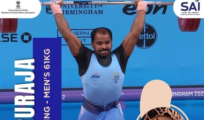 ಬರ್ಮಿಂಗ್ ಹ್ಯಾಮ್ ನಲ್ಲಿ ನಡೆಯುತ್ತಿರುವ ಕಾಮನ್ ವೆಲ್ತ್ ಕ್ರೀಡಾಕೂಟದ ಎರಡನೇ ದಿನವಾದ ಇಂದು ಭಾರತಕ್ಕೆ ಎರಡನೇ ಪದಕ ಲಭಿಸಿದೆ. 61 ಕೆಜಿ ವಿಭಾಗದ ವೇಟ್ ಲಿಫ್ಟಿಂಗ್ನಲ್ಲಿ ಕುಂದಾಪುರದ ಗುರುರಾಜ್ ಪೂಜಾರಿ ಕಂಚಿನ ಪದಕಕ್ಕೆ ಕೊರಳೊಡ್ಡಿದ್ದಾರೆ.