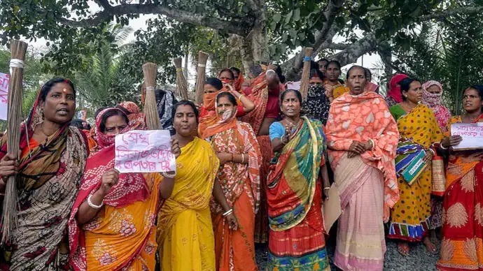 ಸಂದೇಶ್‌ಖಾಲಿಯ ಮಹಿಳೆಯರು ಟಿಎಂಸಿ ಪ್ರಬಲ ವ್ಯಕ್ತಿ ಷಹಜಹಾನ್ ಮತ್ತು ಅವರ ಸಹಾಯಕರಿಂದ ಅತ್ಯಾಚಾರ, ಲೈಂಗಿಕ ಕಿರುಕುಳ ನೀಡಿದ್ದಾರೆ ಎಂದು ಆರೋಪಿಸಿದ್ದಾರೆ. ಇದು ಬಂಗಾಳದ ಬಿಜೆಪಿಯಿಂದ ಬೃಹತ್ ಪ್ರತಿಭಟನೆಗಳನ್ನು ಪ್ರೇರೇಪಿಸಿತು.