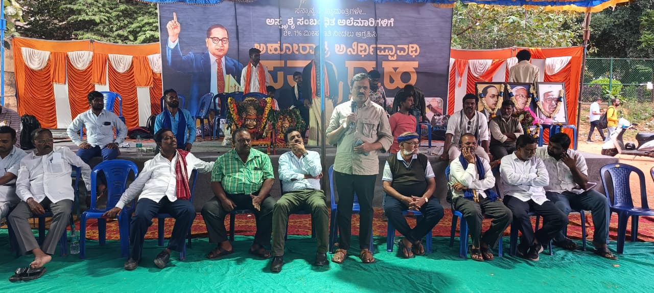 “ಪೂನಾ ಒಪ್ಪಂದ ಆದಾಗ ಬಾಬಾ ಸಾಹೇಬರು ಸೋತರೆ? ಹತಾಶರಾಗಿ ಕೈಬಿಟ್ಟರೆ? ಇಲ್ಲ ಅವರು ಹೋರಾಟ ಮುಂದುವರೆಸಿ ನಮಗೆಲ್ಲ ಮೀಸಲಾತಿ ಕೊಡಲಿಲ್ಲವೇ? ಅದೇ ರೀತಿ ಒಳ ಮೀಸಲಾತಿಗಾಗಿಯೂ ಯಾವ ಸರ್ಕಾರ, ಯಾವ ರಾಜಕಾರಣಿಗಳು ಮಾಡದ್ದನ್ನು ಸುಪ್ರೀಂ ಕೋರ್ಟ್ನ ಸಾಂವಿಧಾನಿಕ ಪೀಠದ ಮೂಲಕ ಜಾರಿ ಮಾಡಿಸಿಕೊಂಡಿದ್ದೀವಿ. 370ಜೆ, ಒಳ ಮೀಸಲಾತಿ ಎಲ್ಲವೂ ಸಂವಿಧಾನದ ಮೂಲಕ ಜಾರಿಯಾಗಿದೆ. ಸುಪ್ರೀಂ ಕೋರ್ಟ್ನ ತೀರ್ಪು ಸತ್ತಿಲ್ಲ. ಅದನ್ನು ಇಟ್ಟುಕೊಂಡು ಕಾನೂನು ಹೋರಾಟ ಸಹ ಮಾಡೋಣ. 1% ಮೀಸಲಾತಿ ನಮಗೆ ದಕ್ಕೆ ದಕ್ಕುತ್ತದೆ. ನಮ್ಮ ಪರವಾಗಿ ಪ್ರೊ.ಹರಗೋಪಾಲ್ ನಮ್ಮ ಹೋರಾಟಕ್ಕೆ ಬೆಂಬಲ ಘೋಷಿಸಿ ಇಲ್ಲಿಗೆ ಬರುತ್ತಿದ್ದಾರೆ. ಮೀಸಲಾತಿ ನಮ್ಮ ಭಿಕ್ಷೆಯಲ್ಲ, ಹಕ್ಕು ಎಂದು ಸಾರಿದ್ದಾರೆ. ಪ್ರೊ.ಸಾಯಿಬಾಬಾರವರು ಎಷ್ಟು ಹೋರಾಟ ಮಾಡಿದ್ದಾರೆ? ಪಾಪಾ ಅವರನ್ನು ಜೈಲಿಗೆ ಹಾಕಿದರೂ ಹೋರಾಟ ಬಿಡಲಿಲ್ಲ. ಹಾಗಾಗಿ ನಾವು ಹತಾಶರಾಗುವುದು ಬೇಡ. ನಿಮ್ಮ ಕೈಮುಗಿದು ಹೇಳುತ್ತೇನೆ, ನಿರಾಶರಾಗಬೇಡಿ, ಜೊತೆಗೂಡಿ ಹೋರಾಡೋಣ ಬನ್ನಿ” ಎಂದು ಕರೆ ಕೊಟ್ಟಿದ್ದಾರೆ.