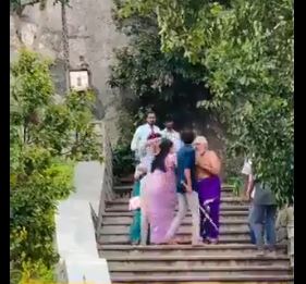 People are beating the temple priest at DD Hills, Tumkur, Karnataka, people are saying the priest touched a woman inappropriately during the worship. pic.twitter.com/bSaMtMS6Ph