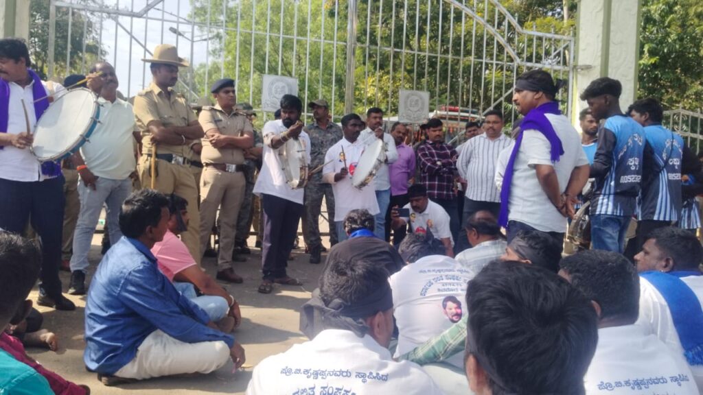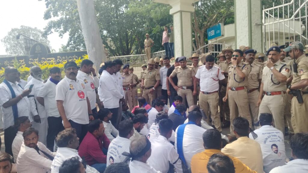 ಶಿವಮೊಗ್ಗದ ಕುವೆಂಪು ವಿಶ್ವವಿದ್ಯಾನಿಲಯದಲ್ಲಿ ಇಂದು “ಭಗವದ್ಗೀತೆ ಮತ್ತು ಅಪರಾಧ ನಿಯಂತ್ರಣ” ಎಂಬ ಶೀರ್ಷಿಕೆಯ ವಿಚಾರ ಸಂಕಿರಣ ಏರ್ಪಡಿಸಿದ್ದು, ಕರ್ನಾಟಕ ದಲಿತ ಸಂಘರ್ಷ ಸಮಿತಿ (ಕೆಡಿಎಸ್ಎಸ್) ವಿವಿ ಮುಂದೆ ಪ್ರತಿಭಟನೆ ನಡೆಸಿತು.