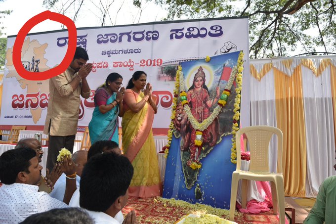 ಪೌರತ್ವ ತಿದ್ದುಪಡಿ ಕಾಯ್ದೆಯ ಪರವಾಗಿ ರಾಷ್ಟ್ರ ಜಾಗರಣ ಸಮಿತಿಯು ಇಂದು ಹಮ್ಮಿಕೊಂಡಿದ್ದ ಕಾರ್ಯಕ್ರಮದಲ್ಲಿ ಭಾರತದ ಭೂಪಟದಿಂದ ಪಾಕ್‌ ಆಕ್ರಮಿತ ಕಾಶ್ಮಿರ ಚಿತ್ರವನ್ನು ಕೈಬಿಡುವ ಮೂಲಕ ವಿವಾದ ಭುಗಿಲೆದ್ದಿದೆ.