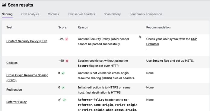 ಮೊಜಿಲ್ಲಾ ಅಬ್ಸರ್ವೇಟರಿ ಸ್ಕೋರ್: 15/100, ಅಪಾಯಕಾರಿ ವೈಫಲ್ಯ