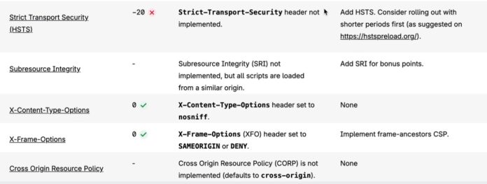 ಸಿಎಸ್ಪಿ ನಿಷ್ಕ್ರಿಯಗೊಂಡಿದೆ, ಎಚ್ಎಸ್ಟಿಎಸ್ ಕಾಣೆಯಾಗಿದೆ ಮತ್ತು ಕುಕೀಗಳಲ್ಲಿ SameSite ಕೊರತೆ