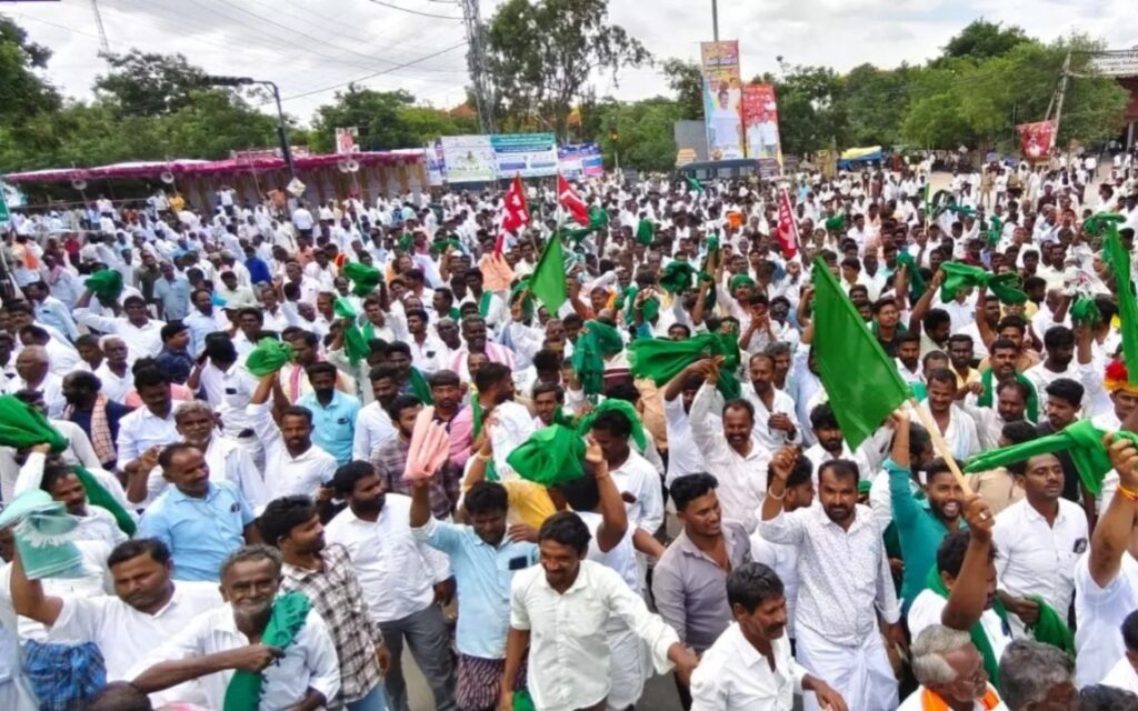 ರೈತರು ಬೆಳೆದ ಜೋಳವನ್ನು ಸಂಪೂರ್ಣವಾಗಿ ಸರ್ಕಾರ ಖರೀದಿಸಬೇಕೆಂದು ಒತ್ತಾಯಿಸಿ ರೈತ ಸಂಘಟನೆಗಳು, ಜೋಳ ಬೆಳೆಗಾರರ ಒಕ್ಕೂಟ ಹಾಗೂ ವಿವಿಧ ಸಂಘ-ಸಂಸ್ಥೆಗಳ ನೇತೃತ್ವದಲ್ಲಿ ಸೋಮವಾರ ಸಿಂಧನೂರು ಬಂದ್ ಹಾಗೂ ಬೃಹತ್ ಪ್ರತಿಭಟನಾ ಮೆರವಣಿಗೆ ನಡೆಯಿತು. ಕಳೆದ ಮೂರು ದಿನಗಳಿಂದ ಮಿನಿವಿಧಾನಸೌಧದ ಆವರಣದಲ್ಲಿ ನಡೆಯುತ್ತಿದ್ದ ಅನಿರ್ದಿಷ್ಠಾವಧಿ ಧರಣಿ ಸತ್ಯಾಗ್ರಹವು ಸೋಮವಾರ ‘ಸಿಂಧನೂರು ಬಂದ್’ ಚಳವಳಿಯಾಗಿ ಮಾರ್ಪಟ್ಟಿತು. ಬೆಳಿಗ್ಗೆ 9 ಗಂಟೆಗೆ ರೈತ ಹಾಗೂ ಕ್ರಾಂತಿ ಗೀತೆಗಳೊಂದಿಗೆ ಆರಂಭಗೊಂಡ ಪ್ರತಿಭಟನೆಗೆ ಪ್ರಗತಿಪರ, ದಲಿತಪರ, ಕನ್ನಡಪರ, ಮಹಿಳಾಪರ ಸಂಘಟನೆಗಳ ಒಕ್ಕೂಟ, ಎಪಿಎಂಸಿ ವರ್ತಕರು, … Continue reading ಸರ್ಕಾರ ಜೋಳ ಖರೀದಿಸುವಂತೆ ಒತ್ತಾಯಿಸಿ ‘ಸಿಂಧನೂರು ಬಂದ್’; ಬೃಹತ್ ಪ್ರತಿಭಟನಾ ಮೆರವಣಿಗೆ