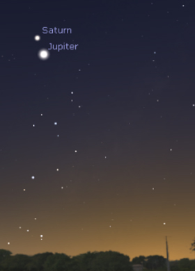 ನವೆಂಬರ್ 23 ರಂದು, ಸೂರ್ಯ ದಿಗಂತದಲ್ಲಿ ಮುಳುಗಿದ ನಂತರ, ನೈಋತ್ಯಕ್ಕೆ ಮುಖ ಮಾಡಿ ನಿಂತರೆ, ಶುಭ್ರ ಆಕಾಶದಲ್ಲಿ ಎರಡು ಚುಕ್ಕಿಗಳು ತುಂಬ ಹತ್ತಿರದಲ್ಲಿ ಹೊಳೆಯುತ್ತಿರುತ್ತವೆ. ಇವು ಚುಕ್ಕಿಗಳಲ್ಲ, ಬದಲಾಗಿ ಇವು ಗ್ರಹಗಳು. ಎರಡು ಚುಕ್ಕಿಗಳಲ್ಲಿ, ತುಂಬ ಹೊಳಪಾಗಿ ಕಾಣುವ ಕೆಳಗಿನ ಚುಕ್ಕಿ (ಚಿತ್ರದಲ್ಲಿ ನೋಡಿ), ಗುರು ಗ್ರಹ. ಇದರ ಮೇಲೆ ಕಾಣುವ ಚುಕ್ಕಿ, ಶನಿ ಗ್ರಹ. ಇವೆರಡೂ ಗ್ರಹಗಳನ್ನು, ಮೋಡಗಳಿಲ್ಲದ ದಿಗಂತದ ಆಗಸದಲ್ಲಿ ಬರಿಗಣ್ಣಿನಲ್ಲಿ ನೋಡಬಹದು. ಈ ಗ್ರಹಗಳ ಮೇಲ್ಮೈನ ಸೂಕ್ಷ್ಮ ವಿವರಗಳನ್ನು ನೋಡಬೇಕಾದರೆ, ಸಣ್ಣಗಾತ್ರದ (5 ರಿಂದ 6 ಇಂಚಿನ ದೂರದರ್ಶಕ) ದೂರದರ್ಶಕದ ಸಹಾಯ ಬೇಕಾಗುತ್ತದೆ. ಈ ಗ್ರಹಗಳನ್ನು ದೂರದರ್ಶಕದಿಂದ ನೋಡಿದಾಗ, ಶನಿ ಗ್ರಹದ ಉಂಗುರಗಳು ಮತ್ತು ಗುರು ಗ್ರಹದ ಪ್ರಮುಖವಾದ ನಾಲ್ಕು ಗೆಲಿಲಿಯನ್ ಉಪಗ್ರಹಗಳನ್ನೂ (ಈಯೋ, ಗ್ಯಾನಿಮಿಡ, ಕ್ಯಾಲಿಸ್ಟೋ ಮತ್ತು ಯುರೋಪ) ಕಾಣಬಹುದಾಗಿದೆ. ಈ ಜೋಡಿ ಗ್ರಹಗಳು ಜನವರಿ ಮಾಹೆಯ ಮಧ್ಯದವರೆಗೂ ನೋಡಬಹುದಾಗಿದೆ. ಈ ವಾರದಲ್ಲಿ, ಪ್ರತಿ ದಿನವು ಈ ಎರಡೂ ಗ್ರಹಗಳು, ರಾತ್ರಿ 9.30 ರಿಂದ 10 ಗಂಟೆಯ ಅವಧಿಯಲ್ಲಿ ಮುಳುಗಲಿದ್ದು, ಅಲ್ಲಿಯವರೆಗೂ ನೋಡಬಹುದು. ಈ ಎರಡೂ ಜೋಡಿ ಗ್ರಹಗಳು ವಾರ ಕಳೆದಂತೆ, ಆಗಸದಲ್ಲಿ ಇನ್ನೂ ಹತ್ತಿರವಾಗಿ ಜೋಡಿ ನಕ್ಷತ್ರಗಳಂತೆ ಹೊಳೆಯುತ್ತವೆ. ಹಿಂದಿನ ಬಾರಿ ಈ ರೀತಿ ಆಗಸದಲ್ಲಿ ಈ ಎರಡೂ ಗ್ರಹಗಳು ಕನಿಷ್ಠ ಅಂತರದಲ್ಲಿ ಜೋಡಿ ಗ್ರಹಗಳಾಗಿ ಕಾಣಿಸಿದ್ದಾಗ, ಈ ಜಗತ್ತು ಕಂಡ ಖ್ಯಾತ ವಿಜ್ಞಾನಿ ಗೆಲಿಲಿಯೋ ಗೆಲಿಲಿ ಬದುಕಿದ್ದ!!