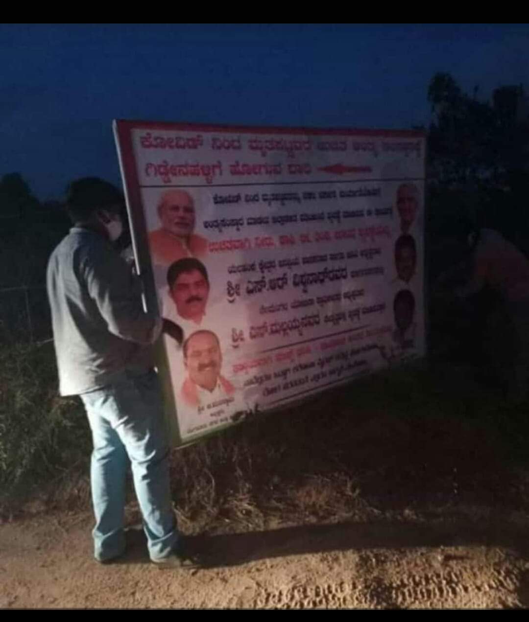 ಜನರು ಆಮ್ಲಜನಕವಿಲ್ಲದೆ ಕಷ್ಟಕ್ಕೊಳಗಾಗುತ್ತಿದ್ದಾರೆ, ಇದನ್ನು ಸರಿಪಡಿಸಬೇಕಿದ್ದ ಆಡಳಿತರೂಢ ಬಿಜೆಪಿ ಸರ್ಕಾರವು ಬೆಂಗಳೂರಿನ ಹೊರವಲಯದ ಗಿಡ್ಡೇನಹಳ್ಳಿಯ ಬಳಿ ಕೋವಿಡ್ನಿಂದ ಮೃತಪಟ್ಟವ ಶವಸಂಸ್ಕಾರಕ್ಕೆ ತೆರಳುವವರಿಗೆ, “ಉಚಿತ ನೀರು, ಟೀ, ಕಾಫಿ, ತಿಂಡಿ, ಊಟದ ವ್ಯವಸ್ಥೆ ಮಾಡಿದ್ದೇವೆ” ಎಂದು ಪ್ರಧಾನಿ ಮೋದಿ, ಮುಖ್ಯಮಂತ್ರಿ ಯಡಿಯೂರಪ್ಪ, ಸಚಿವ ಆರ್. ಅಶೋಕ್, ಬಿಡಿಎ ಅಧ್ಯಕ್ಷ, ಶಾಸಕ ಎಸ್. ಆರ್. ವಿಶ್ವನಾಥ್ ಸೇರಿದಂತೆ ಇನ್ನಿಬ್ಬರ ನಗುಮುಖದ ಫ್ಲೆಕ್ಸ್ ಹಾಕಿ ಅಸೂಕ್ಷತೆ ಮರೆದಿದ್ದಾರೆ.