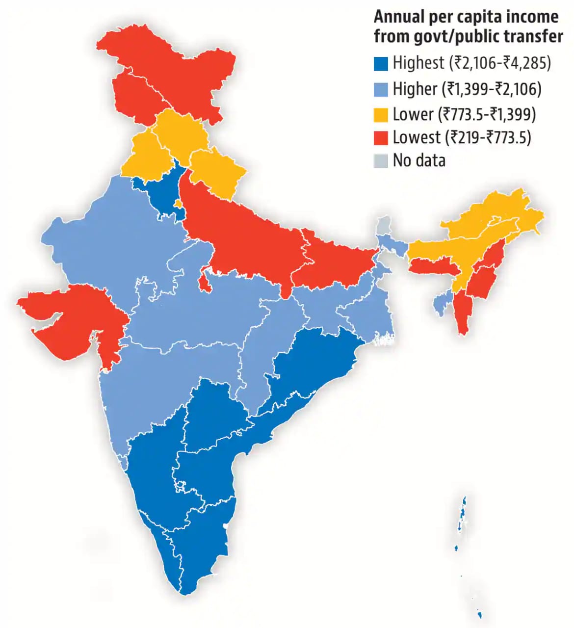 ಕೃಷಿ ಸಬ್ಸಿಡಿಗಳು ಅಥವಾ ಎಲ್ಪಿಜಿ ಸಿಲಿಂಡರ್ಗಳ ಮೇಲಿನ ಸಬ್ಸಿಡಿಗಳಂತಹ 13 ಬಗೆಯ ಸರ್ಕಾರಿ ವರ್ಗಾವಣೆಗಳ ಪಟ್ಟಿಯಿಂದ ಪಡೆದ ಆದಾಯ ಎಂದು ಇದನ್ನು ವ್ಯಾಖ್ಯಾನಿಸಲಾಗಿದೆ. ಅಂಕಿಅಂಶಗಳು ಸರ್ಕಾರಕ್ಕೆ ಆಸಕ್ತಿದಾಯಕ ಸವಾಲನ್ನು ನೀಡುತ್ತವೆ. ಸಬ್ಸಿಡಿಗಳ ಸಾಮಾಜಿಕ ಮತ್ತು ಪ್ರಾದೇಶಿಕ ಗುರಿಯ ವಿಷಯಕ್ಕೆ ಬಂದಾಗ ಭಾರತವು ಉತ್ತಮವಾಗಿ ಕಾರ್ಯನಿರ್ವಹಿಸುತ್ತದೆ, ಆದರೆ ಶ್ರೀಮಂತರು ಈ ಸಬ್ಸಿಡಿಗಳಿಂದ ಇನ್ನೂ ಹೆಚ್ಚಿನದನ್ನು ಪಡೆಯುತ್ತಿದ್ದಾರೆ. ಹಳ್ಳಿಗಳಲ್ಲಿ ವಾಸಿಸುವ ಅಥವಾ ಪರಿಶಿಷ್ಟ ಪಂಗಡ (ಎಸ್ಟಿ), ಪರಿಶಿಷ್ಟ ಜಾತಿ (ಎಸ್ಸಿ) ಮತ್ತು ಇತರ ಹಿಂದುಳಿದ ವರ್ಗಗಳಿಗೆ (ಒಬಿಸಿ) ಸೇರಿದ ಕುಟುಂಬಗಳು, ನಗರಗಳಲ್ಲಿ ವಾಸಿಸುವ ಅಥವಾ ಈ ಸಾಮಾಜಿಕ ಗುಂಪುಗಳಿಗೆ ಸೇರದವರಿಗಿಂತ ಹೆಚ್ಚಿನ ಸಬ್ಸಿಡಿ ಪಡೆಯುತ್ತವೆ ಎನ್ನಲಾಗಿದೆ. ಇದರ ಹೊರತಾಗಿಯೂ, ಅಗ್ರ 20% ಕುಟುಂಬಗಳು ಪ್ರತಿ ರೂಪಾಯಿಗೆ 1.43 ರೂನಷ್ಟು ಸರ್ಕಾರದ ಬೆಂಬಲವನ್ನು ಪಡೆಯುತ್ತಿವೆ.