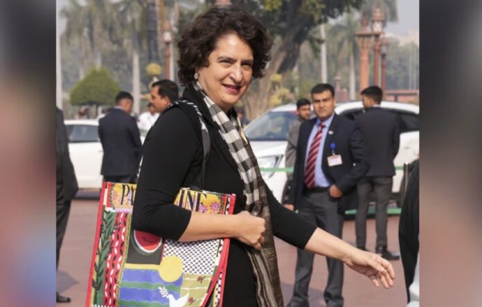 ಯುದ್ದ ಪೀಡಿತ ಪ್ಯಾಲೆಸ್ತೀನ್ ಜನತೆಗೆ ಬೆಂಬಲ ಸೂಚಿಸುವ ಸಲುವಾಗಿ ಕಾಂಗ್ರೆಸ್ ಸಂಸದೆ ಪ್ರಿಯಾಂಕಾ ಗಾಂಧಿ ವಾದ್ರಾ ಅವರು ಇಂದು (ಡಿ.16) ಸಂಸತ್ತಿಗೆ ಪ್ಯಾಲೆಸ್ತೀನ್ ಎಂದು ಬರೆದಿರುವ ಬ್ಯಾಗ್ ಹೊತ್ತು ಆಗಮಿಸುವ ಮೂಲಕ ಗಮನಸೆಳೆದರು.
