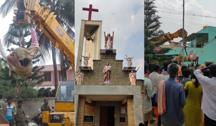 ಕ್ರಿಶ್ಚಿಯನ್ ಸಮುದಾಯಕ್ಕೆ ನೀಡಲಾಗಿದ್ದ ಸ್ಮಶಾನ ಭೂಮಿಯ ಸಣ್ಣಗುಡ್ಡದ ಮೇಲೆ ನಿಲ್ಲಿಸಲಾಗಿದ್ದ ಏಸು ಪ್ರತಿಮೆ ಮತ್ತು 14 ಶಿಲುಬೆಗಳನ್ನು ತಹಶೀಲ್ದಾರ್ ನೇತೃತ್ವದಲ್ಲಿ ಜೆಸಿಬಿಯಿಂದ ಏಕಾಏಕಿ ಧ್ವಂಸಗೊಳಿಸಿರುವ ಘಟನೆ ಬೆಂಗಳೂರು ಗ್ರಾಮಾಂತರ ಜಿಲ್ಲೆಯ ದೇವನಹಳ್ಳಿ ತಾಲೂಕಿನಲ್ಲಿ ನಡೆದಿದೆ.