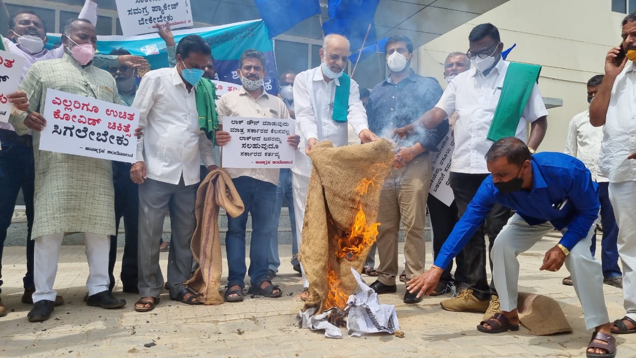 ಕರ್ನಾಟಕ ಜನಶಕ್ತಿಯ ರಾಜ್ಯಾಧ್ಯಕ್ಷರಾದ ನೂರ್ ಶ್ರೀಧರ್ರವರು ಮಾತನಾಡಿ, “ನಾವು ಇದುವರೆಗೆ ಮೂರು ಸುತ್ತಿನಲ್ಲಿ ಹೋರಾಟ ನಡೆಸಿದ್ದೇವೆ. ಇಂದು ನಾಲ್ಕನೇ ಬಾರೀ ಹೋರಾಟಕ್ಕಿಳಿದ್ದಿದ್ದೇವೆ. ಏಕೆಂದರೆ ಸರ್ಕಾರ ಕೋವಿಡ್ ಅನ್ನು ಇಂದಿಗೂ ಗಂಭೀರವಾಗಿ ಪರಿಗಣಿಸಿಲ್ಲ. ತಜ್ಞರು ಎರಡನೇ ಅಲೆ ಬಗ್ಗೆ ಎಚ್ಚರಿಸಿದ್ದರೂ ಸಹ ಸರ್ಕಾರ ಎಚ್ಚೆತ್ತುಕೊಳ್ಳಲಿಲ್ಲ ಎಂಬುದಕ್ಕೆ ನೆಲಮಂಗಲದಲ್ಲಿದ್ದ 10000 ಬೆಡ್ಗಳ ಕೋವಿಡ್ ಕೇರ್ ಸೆಂಟರ್ ಅನ್ನು ಮುಚ್ಚಿದ್ದೆ ಸಾಕ್ಷಿ” ಎಂದು ಕಿಡಿಕಾರಿದರು.