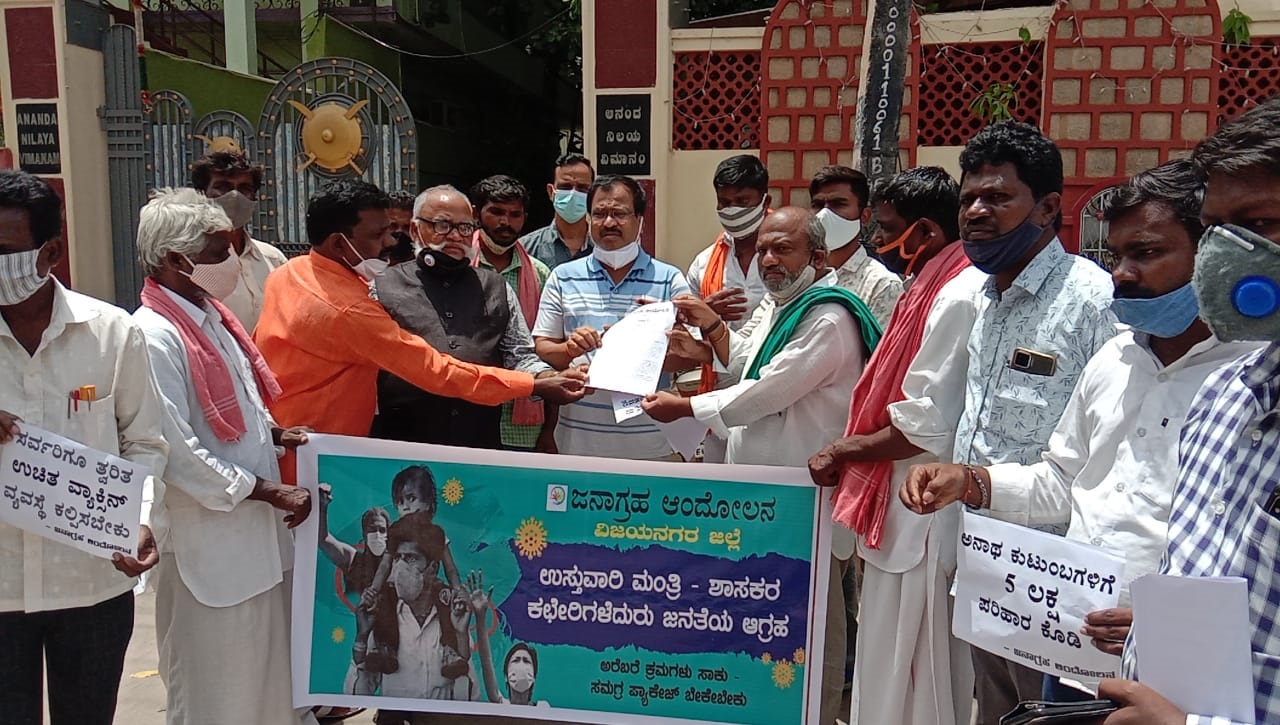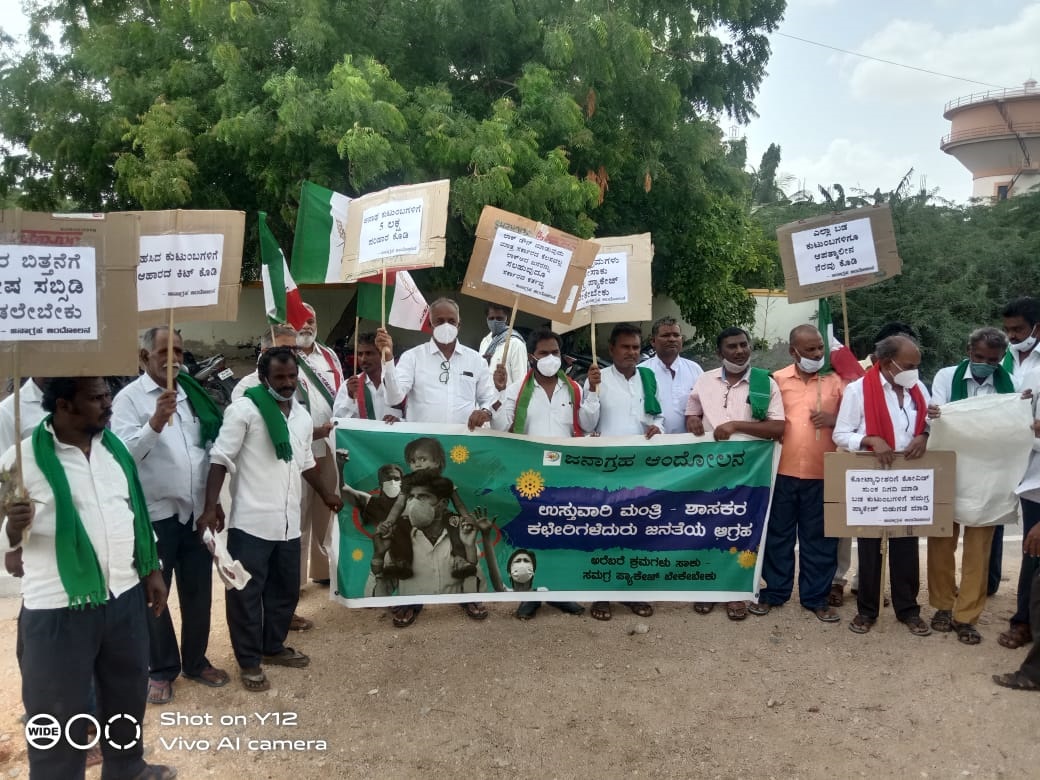 ಕೊರೊನಾ ಎರಡನೇ ಅಲೆ ಇಳಿಯುತ್ತಿದೆ. ಆದರೆ ಜನರ ಮೇಲಿನ ಹೊರೆಗಳು ಹೆಚ್ಚಾಗುತ್ತಿವೆ. ಸತತ ಎರಡು ತಿಂಗಳ ಕರ್ಫ್ಯೂ, ಲಾಕ್ಡೌನ್ನಿಂದಾಗಿ ಕೆಲಸವಿಲ್ಲದೆ ತೀವ್ರ ಆರ್ಥಿಕ ಸಂಕಷ್ಟದಲ್ಲಿದ್ದಾರೆ. ಅರೆಬರೆ ಪ್ಯಾಕೇಜ್ ಘೋಷಿಸಿ ಕೈತೊಳೆದುಕೊಂಡಿದೆ. ಇಂತಹ ಅಸಾಮಾನ್ಯ ಪರಿಸ್ಥಿತಿಯಲ್ಲಿ ಸರ್ಕಾರ ಅಸಾಮಾನ್ಯ ಕ್ರಮಗಳನ್ನು ತೆಗೆದುಕೊಳ್ಳಬೇಕು ಮತ್ತು ಕೂಡಲೇ ಸಮಗ್ರ ಪ್ಯಾಕೇಜ್ ಘೋಷಿಸಬೇಕೆಂದು ಒತ್ತಾಯಿಸಿ ಜನಾಗ್ರಹ ಆಂದೋಲನ ವೇದಿಕೆಯು ರಾಜ್ಯಾದ್ಯಂತ ಶಾಸಕರು, ಸಚಿವರ ಮನೆ ಎದುರು ಪ್ರತಿಭಟನೆ ನಡೆಸಿದೆ.