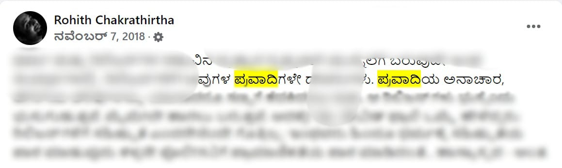 ಇನ್ನೊಂದು ಪೋಸ್ಟ್‌ನಲ್ಲಿ ‘ಧರ್ಮ ಮತ್ತು ರಿಲಿಜಿಯನ್‌’ (ಇದೇ ಧೋರಣೆಯನ್ನು ಹೊಸ ಪಠ್ಯಪುಸ್ತಕಗಳಲ್ಲೂ ಕಾಣಬಹುದು) ನಡುವೆ ವ್ಯತ್ಯಾಸಗಳಿವೆ ಎಂದು ಪ್ರತಿಪಾದಿಸುತ್ತಾ ‘ಪ್ರವಾದಿ’ಯ ಕುರಿತು ನಿಂದನಾತ್ಮಕವಾಗಿ ರೋಹಿತ್‌ ಬರೆದಿದ್ದಾರೆ.