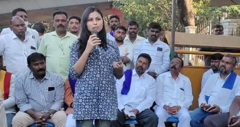 ನಟ ಚೇತನ್ ಅಹಿಂಸಾ ಅವರ ಮೇಲೆ ಪ್ರಕರಣ ದಾಖಲಿಸಿರುವುದನ್ನು ಖಂಡಿಸಿ ಹಾಗೂ ಬಿಡುಗಡೆ ಆಗ್ರಹಿಸಿ ಬೆಂಗಳೂರಿನ ಮೌರ್ಯ ಸರ್ಕಲ್ನಲ್ಲಿ ನಡೆದ ಸಾಂಕೇತಿಕ ಪ್ರತಿಭಟನೆಯಲ್ಲಿ ಅವರು ಮಾತನಾಡಿದರು.