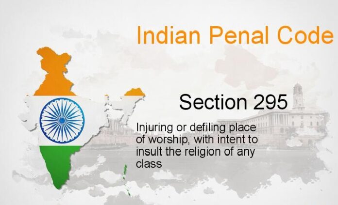 ಐಪಿಸಿಯ ಸೆಕ್ಷನ್ 295 ಮತ್ತು 295ಎ ಧಾರ್ಮಿಕ ಅಪರಾಧಗಳಿಗೆ ಸಂಬಂಧಿಸಿದೆ. ನಿರ್ದಿಷ್ಟವಾಗಿ ಹಿಂದೂ ಧರ್ಮದ ಬಗ್ಗೆ ಅಲ್ಲದೇ, ಇದು ಎಲ್ಲಾ ಧರ್ಮಗಳಿಗೆ ಸಂಬಂಧಿಸಿದೆ.