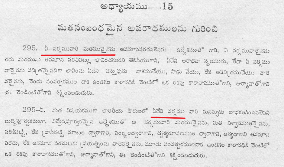 ಆದರೆ, ಈ 295 (1) ಮತ್ತು 502 (2) ವಿಭಾಗಗಳು ಭಾರತೀಯ ದಂಡ ಸಂಹಿತೆ (IPC) ಯಲ್ಲಿಲ್ಲ.