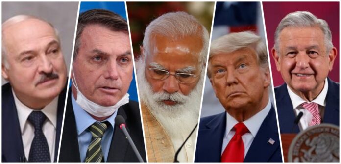 ಸಾಂಕ್ರಾಮಿಕ ನಿರ್ವಹಣೆಯಲ್ಲಿ ವಿಫಲರಾದ ಐವರು ವಿಶ್ವನಾಯಕರ ಆಡಳಿತ ಶೈಲಿ ಕುರಿತು ಇಲ್ಲಿ ವಿಶ್ಲೇಷಣೆಯಿದೆ. ಭಾರತೀಯರಾದ ಪ್ರೊ. ಸುಮಿತ್ ಗಂಗೂಲಿ ಸೇರಿದಂತೆ ಹಲವು ದೇಶಗಳ ತಜ್ಞರು, ಪ್ರೊಫೆಸ್ರ್ಗಳು ಮತ್ತು ವೈದ್ಯರ ನಡುವೆ ನಡೆದ ಚರ್ಚೆಯನ್ನು ‘ದಿ ವೈರ್’ ಸಂಗ್ರಹಿಸಿ ಕೊಟ್ಟಿದೆ.