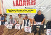 ಲಡಾಖ್ಗೆ ರಾಜ್ಯ ಸ್ಥಾನಮಾನ ಮತ್ತು ಆರನೇ ಶೆಡ್ಯೂಲ್ ವಿಸ್ತರಣೆ ಕೋರಿ ಕಾರ್ಗಿಲ್ನಲ್ಲಿ ಮೂರು ದಿನಗಳ ಉಪವಾಸ ಸತ್ಯಾಗ್ರಹ
