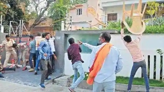 #Telangana, do we need such hate politics? BJP cadre hurling sticks and stones on TRS MLA @DharmareddyTRS's house with Jai Sri Ram slogans. I don't think even Lord Sri Ram would approve such acts. pic.twitter.com/OSuuS7yia8