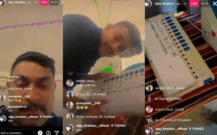 ಆರೋಪಿಗಳಲ್ಲಿ ಒಬ್ಬನಾದ ವಿಜಯ್ ಭಭೋರ್‌ ಎಂಬಾತನ ಫೇಸ್‌ಬುಕ್ ಖಾತೆಯಿಂದ ನೇರ ಪ್ರಸಾರ ಮಾಡಲಾಗಿತ್ತು. ವಿಡಿಯೋದಲ್ಲಿ, ಭಭೋರ್ ಮಹಿಸಾಗರ್ ಜಿಲ್ಲೆಯ ಪ್ರಥಮಪುರದ ಮತಗಟ್ಟೆಯೊಂದಕ್ಕೆ ತೆರಳಿ ಇವಿಎಂ ಹಿಡಿದು ಎಳೆದಾಡಿರುವುದು ಮತ್ತು ಬಿಜೆಪಿ ಅಭ್ಯರ್ಥಿ ಪರ ಮತ ಚಲಾಯಿಸಿದ್ದನ್ನು ನೋಡಬಹುದು. ಈ ಪ್ರದೇಶದಲ್ಲಿ ನನ್ನದೇ ಕಾರುಬಾರು ಎಂಬಂತೆ ಆರೋಪಿ ಇವಿಎಂ ಹಿಡಿದು ಡ್ಯಾನ್ಸ್‌ ಮಾಡಿದ್ದಾನೆ.