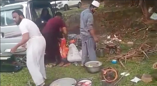#sriramsene members accused a #Muslim family of spoiling the sanctity of a #temple and serpant shrine by preparing fish near it. The family who had come 4m #Mangalore for picnic had camped on the banks of Seethanadi, #Udupi.They later apologized to sene members & left the place. pic.twitter.com/Vulu6eWJ3t