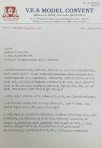 1. ನಮ್ಮ ಶಾಲೆಯಲ್ಲಿ ಜ.24ರಂದು ಹಮ್ಮಿಕೊಳ್ಳಲಾಗಿದ್ದ ಆಂಗ್ಲ ಚರ್ಚಾಸ್ಪರ್ಧೆಗೆ ‘72 years of Bharathiya Samvidana/Indian Constitution has it reached expiry date’ ಎಂಬ ವಿಷಯವನ್ನು ನೀಡಲಾಗಿತ್ತು. ಇದರಿಂದ ಸಾರ್ವಜನಿಕರಿಂದ, ತಮ್ಮ ಸಮಿತಿಯಿಂದ ಆಕ್ಷೇಪಣೆ ಬಂದ ಮೇಲೆ ನಮಗೆ ನಮ್ಮ ತಪ್ಪಿನ ಅರಿವಾಗಿದೆ. ಈ ತಪ್ಪಿಗಾಗಿ ನಮ್ಮ ಆಡಳಿತ ಮಂಡಳಿ ಮತ್ತು ಶಿಕ್ಷಕ ವೃಂದವು ತಮ್ಮ ಸಮಿತಿಗೆ, ಕರ್ನಾಟಕದ ಜನತೆಗೆ ಬೇಷರತ್ ಕ್ಷಮೆ ಕೇಳುತ್ತದೆ.