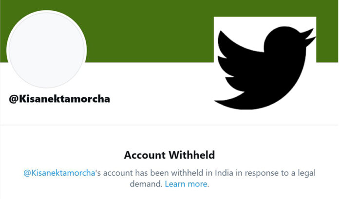 ಕೇಂದ್ರ ಸರ್ಕಾರದ ಸೂಚನೆ ಮೇರೆಗೆ ಕಿಸಾನ್ ಏಕ್ತಾ ಮೋರ್ಚಾ, ಕಾರವಾನ್ ಇಂಡಿಯಾ ಸೇರಿ ಹಲವು ಪ್ರಮುಖ ಸಂಸ್ಥೆ, ಸಂಘಟನೆ ಹಾಗೂ ಸಾರ್ವಜನಿಕ ವ್ಯಕ್ತಿಗಳ ಟ್ವಿಟರ್ ಖಾತೆಯನ್ನು ಟ್ವಿಟರ್ ಇಂಡಿಯಾ ತಾತ್ಕಾಲಿಕವಾಗಿ ಅಮಾನತಿನಲ್ಲಿಟ್ಟಿರುವುದಕ್ಕೆ ಭಾರೀ ವಿರೋಧ ವ್ಯಕ್ತವಾಗಿದೆ. ಇದನ್ನು ಅಘೋಷಿತ ತುರ್ತುಪರಿಸ್ಥಿತಿ ಎಂದು ಕರೆಯಲಾಗಿದೆ.