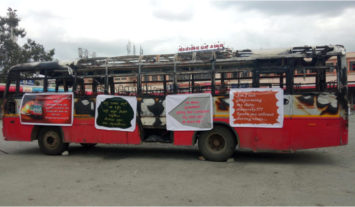 ಸುಟ್ಟು ಕರಕಲಾದ ಬಸನ್ನು ಕೆ.ಎಸ್.ಆರ್.ಟಿ.ಸಿ ಅಧಿಕಾರಿಗಳು ಮೆಜೆಸ್ಟಿಕ್‍ಗೆ ತಂದು ನಿಲ್ಲಿಸಿ ಅದರ ಮೇಲೆ ಬ್ಯಾನರ್ ಹಾಕಿ ಸಾರ್ವಜನಿಕ ಪ್ರದರ್ಶನಕ್ಕಿಟ್ಟಿದ್ದಾರೆ. ಇದನ್ನು ನೋಡಿದ ಜನರಿಗೆ ಅರ್ಥವಾಗಲಿ ಎಂದು.. ಈಗಲಾದರೂ ಎಚ್ಚೆತ್ತುಕೊಳ್ಳೋಣವೇ?