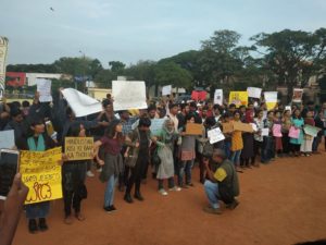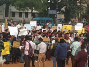 ನೂರಾರು ವಿದ್ಯಾರ್ಥಿಗಳು ಅಂಬೇಡ್ಕರ್ ಫೋಟೊ ಹಿಡಿದು ಪೌರತ್ವ ಕಾಯ್ದೆಯ ವಿರುದ್ಧದ ಘೋಷಣೆಗಳುಳ್ಳ ಭಿತ್ತಿಪತ್ರಗಳೊಂದಿಗೆ ಸಂಜೆ 5 ಗಂಟೆಗೆ ಪ್ರತಿಭಟನೆ ಆರಂಭಿಸಿದ್ದಾರೆ. ಮುಂದಿನ ಸಾಲಿನಲ್ಲಿ ಪರಸ್ಪರ ಕೈ ಕೈ ಹಿಡಿದು ಪ್ರತಿಭಟನೆ ಮುನ್ನಡೆಸಿದರೆ ಅವರ ಹಿಂದೆ ನಾಗರಿಕರು ಬೆಂಬಲ ನೀಡಿದ್ದಾರೆ.