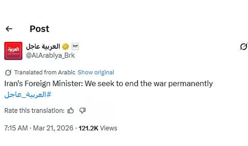 “ನಾವು ಯುದ್ಧವನ್ನು ಶಾಶ್ವತವಾಗಿ ಕೊನೆಗೊಳಿಸಲು ಪ್ರಯತ್ನಿಸುತ್ತೇವೆ” ಎಂದು ಅರಘ್ಚಿ ಹೇಳಿರುವುದಾಗಿ ಸೌದಿ ಅರೇಬಿಯಾದ ಸರ್ಕಾರಿ ಸ್ವಾಮ್ಯದ ಅಂತರರಾಷ್ಟ್ರೀಯ ಅರೇಬಿಕ್ ಭಾಷೆಯ ದೂರದರ್ಶನ ಸುದ್ದಿ ವಾಹಿನಿ ಅಲ್ ಅರಬಿಯಾ ಎಕ್ಸ್ನಲ್ಲಿ ಮಾಡಿದ ನವೀಕರಣದಲ್ಲಿ ತಿಳಿಸಲಾಗಿದೆ.