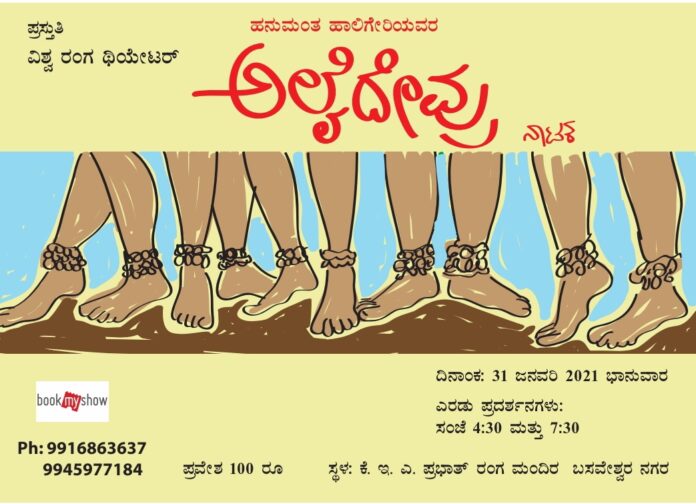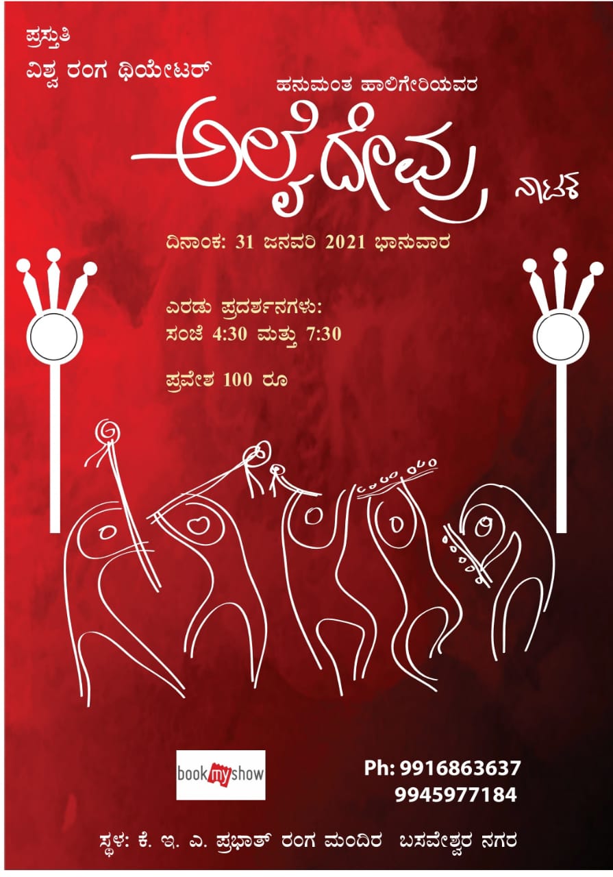 ಇಂದಿನ ಹಳ್ಳಿಗಳ ವಾಸ್ತವ ಬದುಕನ್ನು ತೆರೆದಿಡುವ ಅಲೈದೇವ್ರು ನಾಟಕ ಈ ಭಾನುವಾರ ಎರಡು ಪ್ರದರ್ಶನಗಳನ್ನು ಕಾಣುತ್ತಿದೆ. ಬುಕ್ ಮೈ ಶೋನಲ್ಲಿ ಬುಕ್ ಮಾಡಬಹುದು ಅಥವಾ ಟಿಕೆಟ್ಗಾಗಿ 9916863637 ಸಂಪರ್ಕಿಸಬಹುದು.