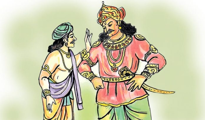 ರಾಜ ತನ್ನ `ಪರಿವಾರ’ ಸಮೇತ ಒಡ್ಡೋಲಗದಲ್ಲಿ ಬ್ಯುಸಿಯಾಗಿದ್ದ. ಅಷ್ಟೊತ್ತು ಮಿಸ್ಸಿಂಗ್ ಆಗಿದ್ದ ಮಂತ್ರಿ, ಜೋರಾಗಿ ರೋಧಿಸುತ್ತ ಕಣ್ಣೀರ ಧಾರೆ ಸುರಿಸುತ್ತ ಓಡೋಡಿ ಒಡ್ಡೋಲಗ ಪ್ರವೇಶಿಸಿದ. ಮಂತ್ರಿಯ ಸ್ಥಿತಿ ನೋಡಿ ರಾಜನಿಗೆ ಗಾಬರಿಯಾಯ್ತು. “ಏನಾಯ್ತು ಮಂತ್ರಪ್ಪ. ಅದ್ಯಾಕಿಂಗೆ ಸಣ್ಣಮಕ್ಕಳ ಥರ ಅತ್ಕೊಂಡು ಬತ್ತಾ ಇದೀಯ? ಮನೆಯಲ್ಲಿ ಹೆಂಡ್ರು, ಮಕ್ಕಳು ಕ್ಷೇಮವೆ” ರಾಜ ವಿಚಾರಿಸಿದ. “ಅಯ್ಯೋ ಏನಂಥಾ ಹ್ಯೇಳೋದು ಮಾರಾಜುರೆ. ಗಂಧರ್ವ ಸೇನಾ ಸತ್ತೋದ್ನಂತೆ!” ಮಂತ್ರಿ ತನ್ನ ಸಂಕಟದ ಮೂಲವನ್ನು ಮುಂದಿಟ್ಟ.