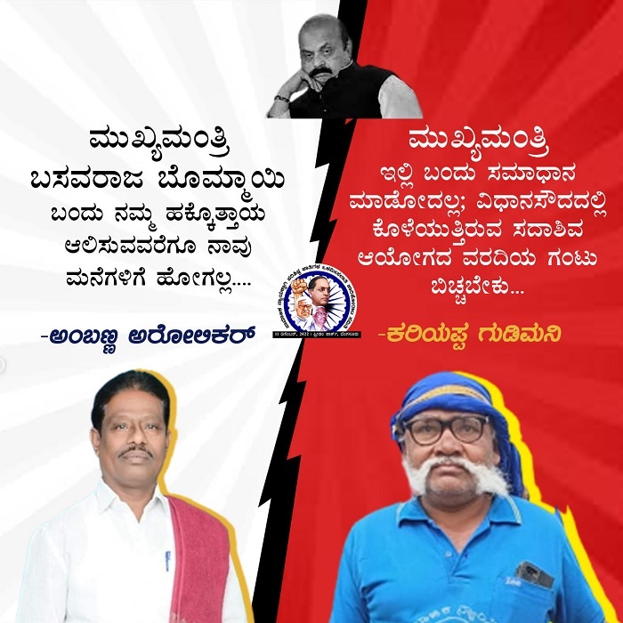 ಹೋರಾಟಗಾರ ಕರಿಯಪ್ಪ ಗುಡಿಮನಿ ಮಾತನಾಡಿ, “ಮುಖ್ಯಮಂತ್ರಿ ಇಲ್ಲಿ ಬಂದು ಸಮಾಧಾನ ಮಾಡೋದಲ್ಲ. ವಿಧಾನಸೌಧದಲ್ಲಿ ಕೊಳೆಯುತ್ತಿರುವ ಸದಾಶಿವ ಆಯೋಗದ ವರದಿಯ ಗಂಟು ಬಿಚ್ಚಬೇಕು” ಎಂದು ಆಗ್ರಹಿಸಿದರು.