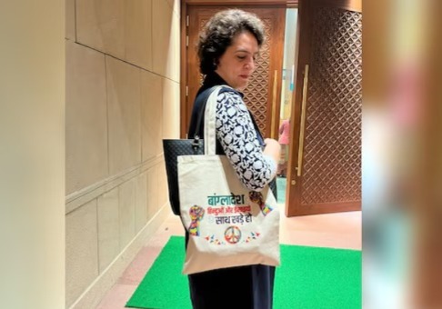 ಕಾಂಗ್ರೆಸ್ ನಾಯಕಿ ಪ್ರಿಯಾಂಕಾ ಗಾಂಧಿ ಅವರು, ವಿಶೇಷ ‘ಸ್ಲೋಗನ್’ ಬರೆದಿರುವ ತಮ್ಮ ಬ್ಯಾಗ್ ಅನ್ನು ಇಂದೂ ಕೂಡ ಧರಿಸಿ ಸಂಸತ್ತಿಗೆ ಆಗಮಿಸಿದರು. ನಿನ್ನೆ ಪ್ಯಾಲೆಸ್ತೀನ್ ಪರವಾಗಿ ಘೋಷಣೆಗಳಿರುವ ಬ್ಯಾಗ್ ಧರಿಸಿದ್ದ ಅವರು, ಇಂದು (ಡಿಸೆಂಬರ್ 17) “ನಾವು ಬಾಂಗ್ಲಾದೇಶದ ಹಿಂದೂಗಳು ಮತ್ತು ಕ್ರಿಶ್ಚಿಯನ್ನರೊಂದಿಗೆ ನಿಲ್ಲುತ್ತೇವೆ” ಎಂಬ ಬ್ಯಾಗ್ ಅನ್ನು ಹೊತ್ತು ಸಂಸತ್ತಿಗೆ ಬಂದರು.