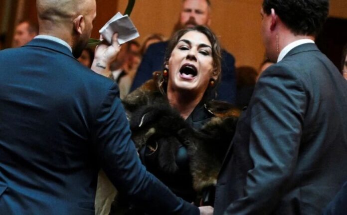 ಕಿಂಗ್ ಚಾರ್ಲ್ಸ್ ಭಾಷಣ ಕೊನೆಗೊಳಿಸುತ್ತಿದ್ದಂತೆ ಸಂಸತ್ ಸಭಾಂಗಣಕ್ಕೆ ಆಗಮಿಸಿದ ಸೆನೆಟರ್ ಥೋರ್ಪ್ ಅವರು, “ನೀವು ನಮ್ಮ ರಾಜನಲ್ಲ” ಎಂದು ಘೋಷಣೆ ಕೂಗಿದ್ದು, “ನಮ್ಮ ಭೂಮಿಯನ್ನು ನಮಗೆ ಹಿಂದಿರುಗಿಸಿ” ಎಂದಿದ್ದಾರೆ.